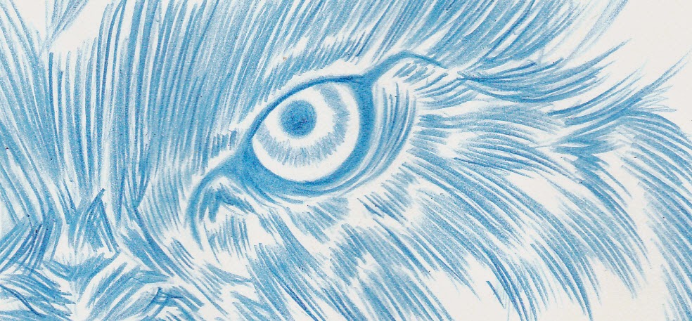 Just a quick pencil sketch of a wolf's eye. I've always had a bit of a thing for the eyes of predatory animals, with the wolf's being one of my favorites. Materials used for this were 8.5 x 11 in. white printer paper, and a 0.7 Draftmatic Pencil with Pentel blue lead.
